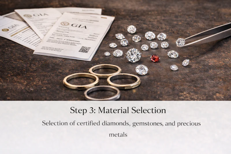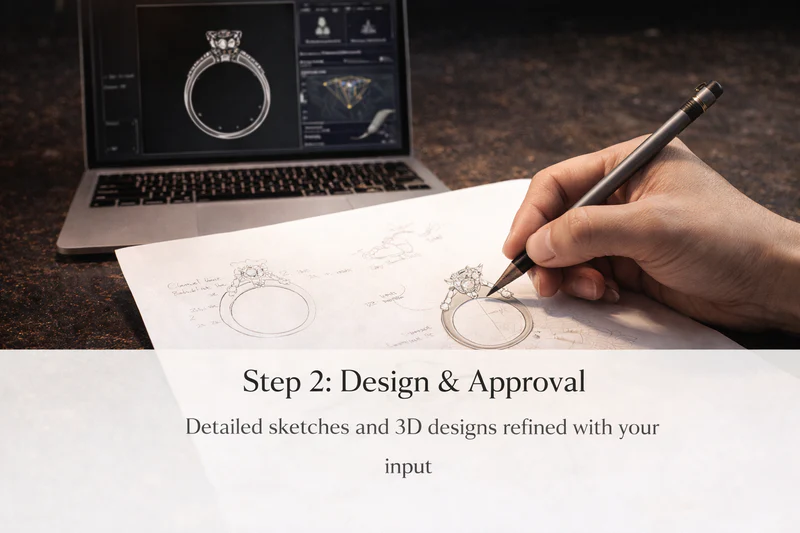 Our expert designers work closely with you through every step — concept, gemstone selection, 3D design, and final craftsmanship. We combine traditional artistry with modern technology to ensure precision, quality, and luxury in every detail.