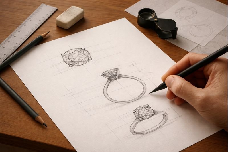 Our expert designers work closely with you through every step — concept, gemstone selection, 3D design, and final craftsmanship. We combine traditional artistry with modern technology to ensure precision, quality, and luxury in every detail.