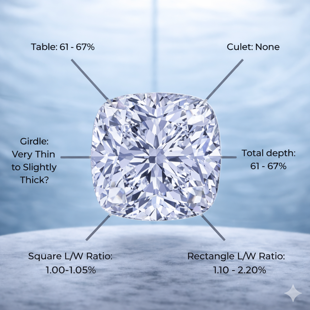CROWN & PAVILION: Taller crown, shallower pavilion for light return